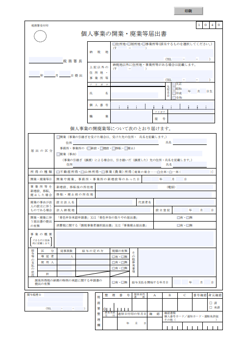 まず必要なのは「開業届」です。事業を始めたことを税務署に知らせる書類で、事業開始から1か月以内に提出するのが原則です。e-Taxから提出できるため、税務署まで提出しに行く必要はありません。