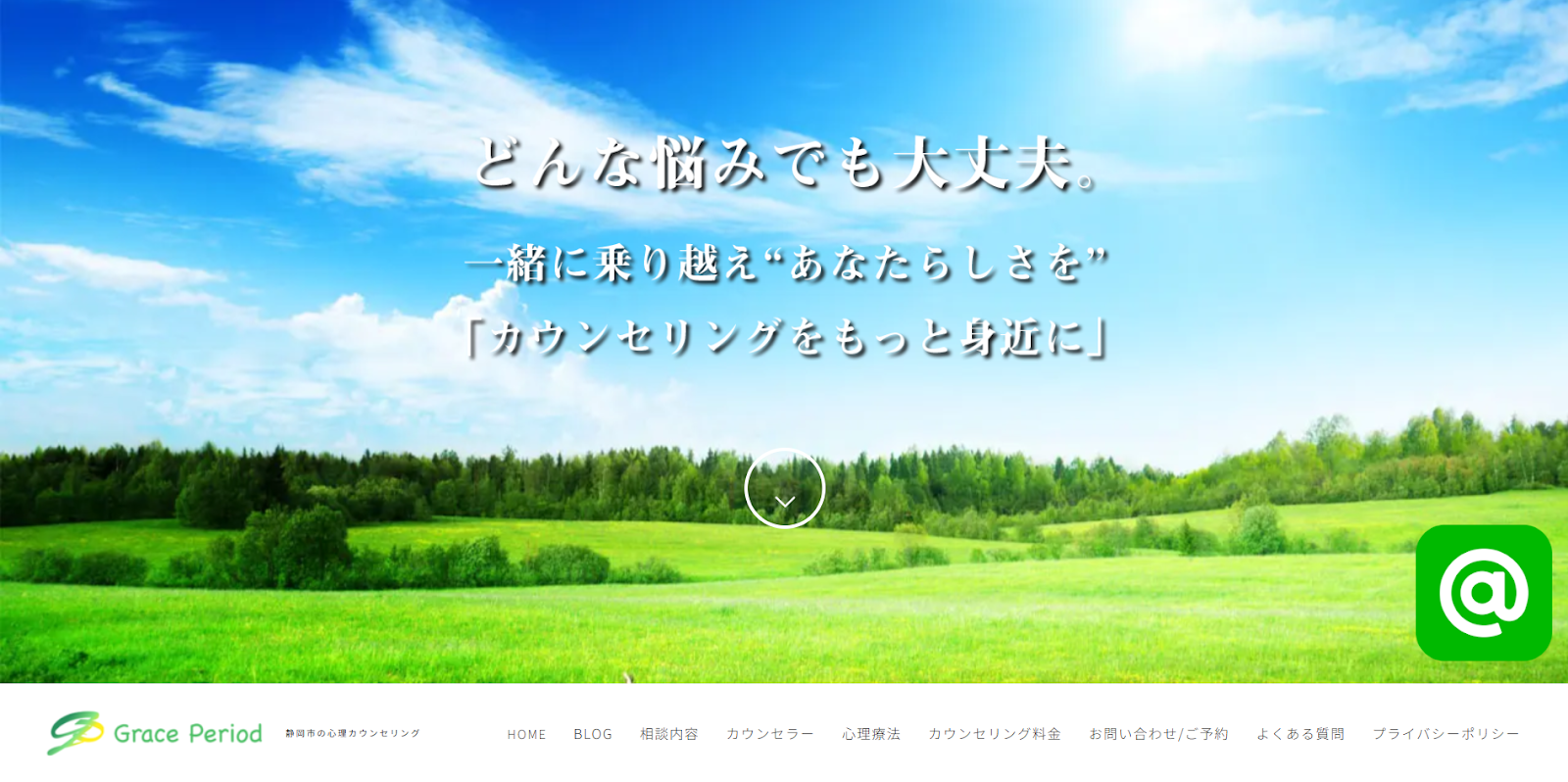 静岡市駿河区にあるグレイス・ピリオドは、夫婦関係や職場の人間関係、心の不調など幅広い悩みに対応しているカウンセリングルームです。