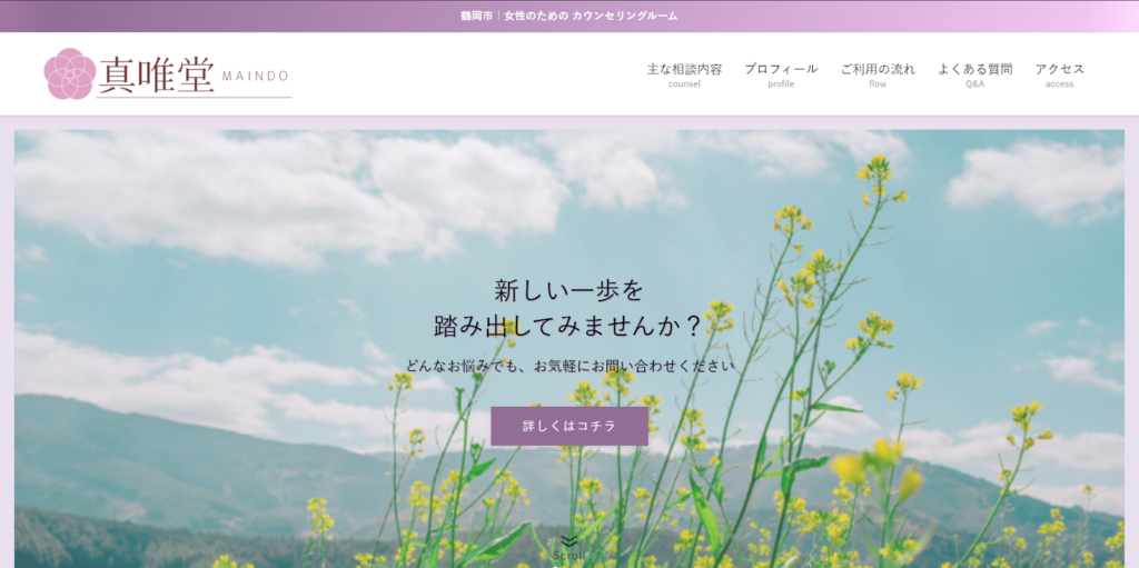 真唯堂は鶴岡市にある女性専門のカウンセリングルームで、女性特有の悩みやライフステージの変化に寄り添う相談室です。